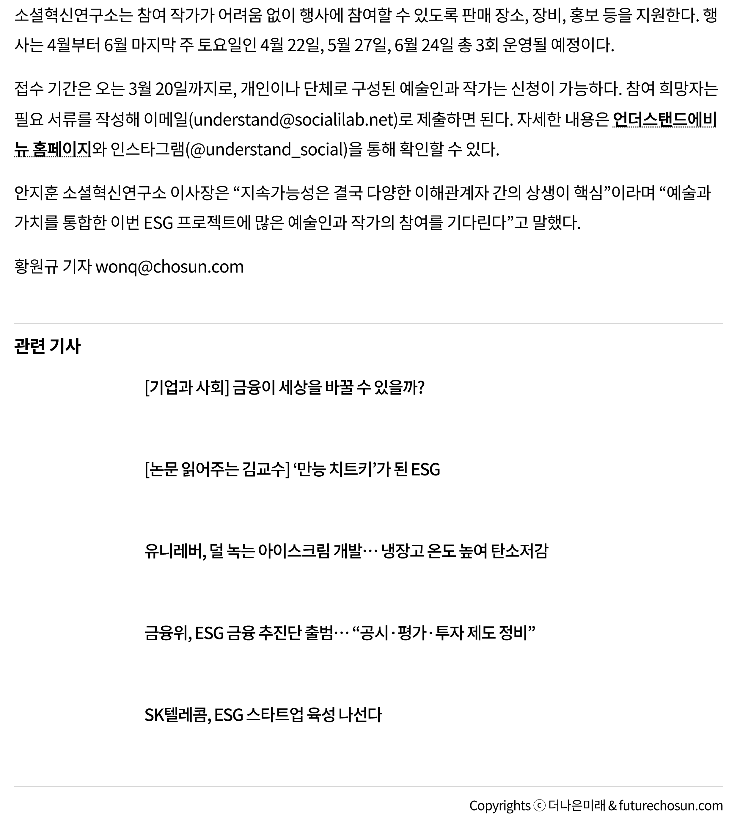 [¼Ò¼ÈÇõ½Å¿¬±¸¼Ò, '¿¹¼úÀΰú °¡Ä¡ÇÏÀå - ESG Çø®¸¶ÄÏ' Âü¿© ÀÛ°¡ ¸ðÁý] ´õ³ªÀº ¹Ì·¡ º¸µµ±â»ç (PDF)