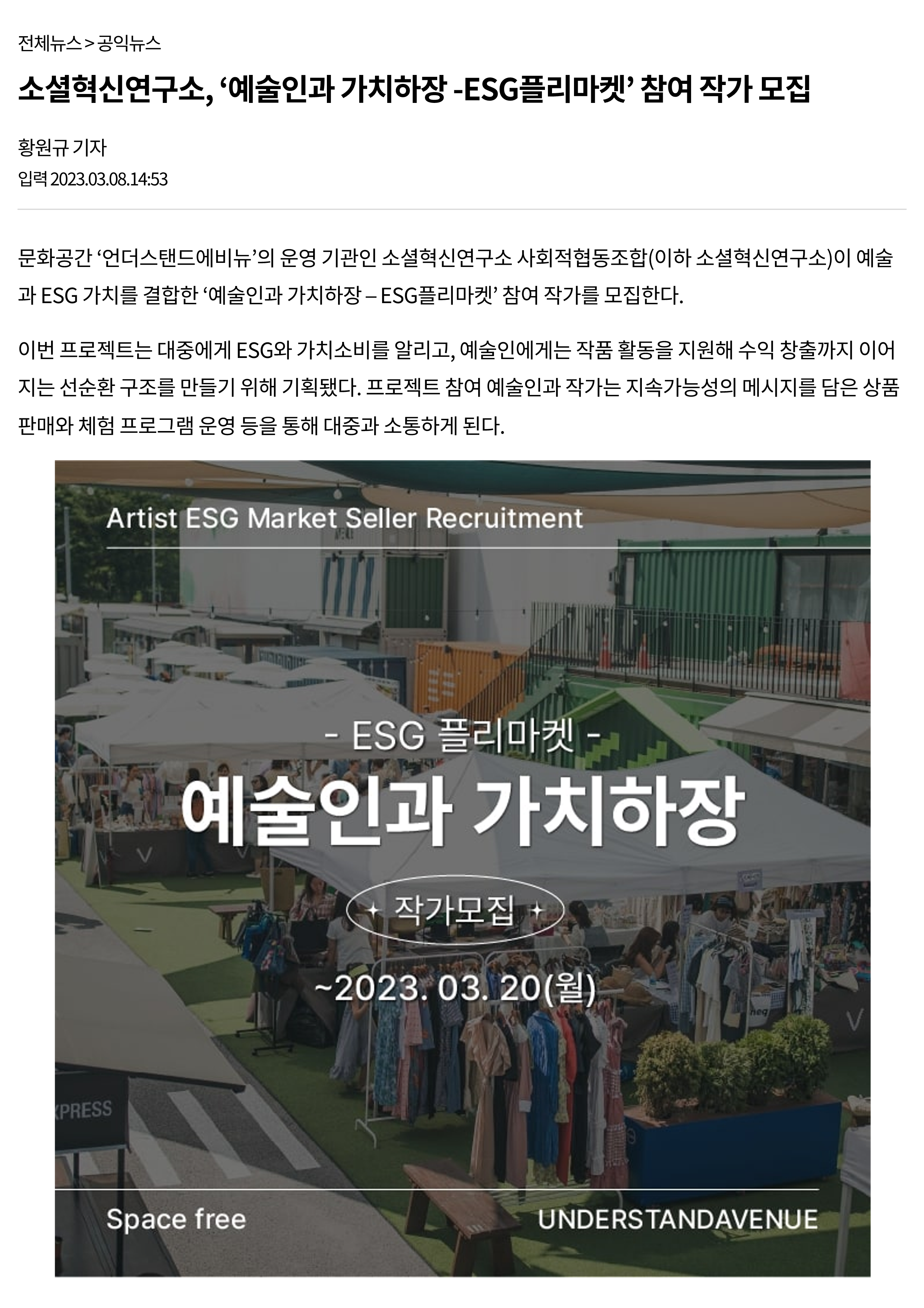 [¼Ò¼ÈÇõ½Å¿¬±¸¼Ò, '¿¹¼úÀΰú °¡Ä¡ÇÏÀå - ESG Çø®¸¶ÄÏ' Âü¿© ÀÛ°¡ ¸ðÁý] ´õ³ªÀº ¹Ì·¡ º¸µµ±â»ç