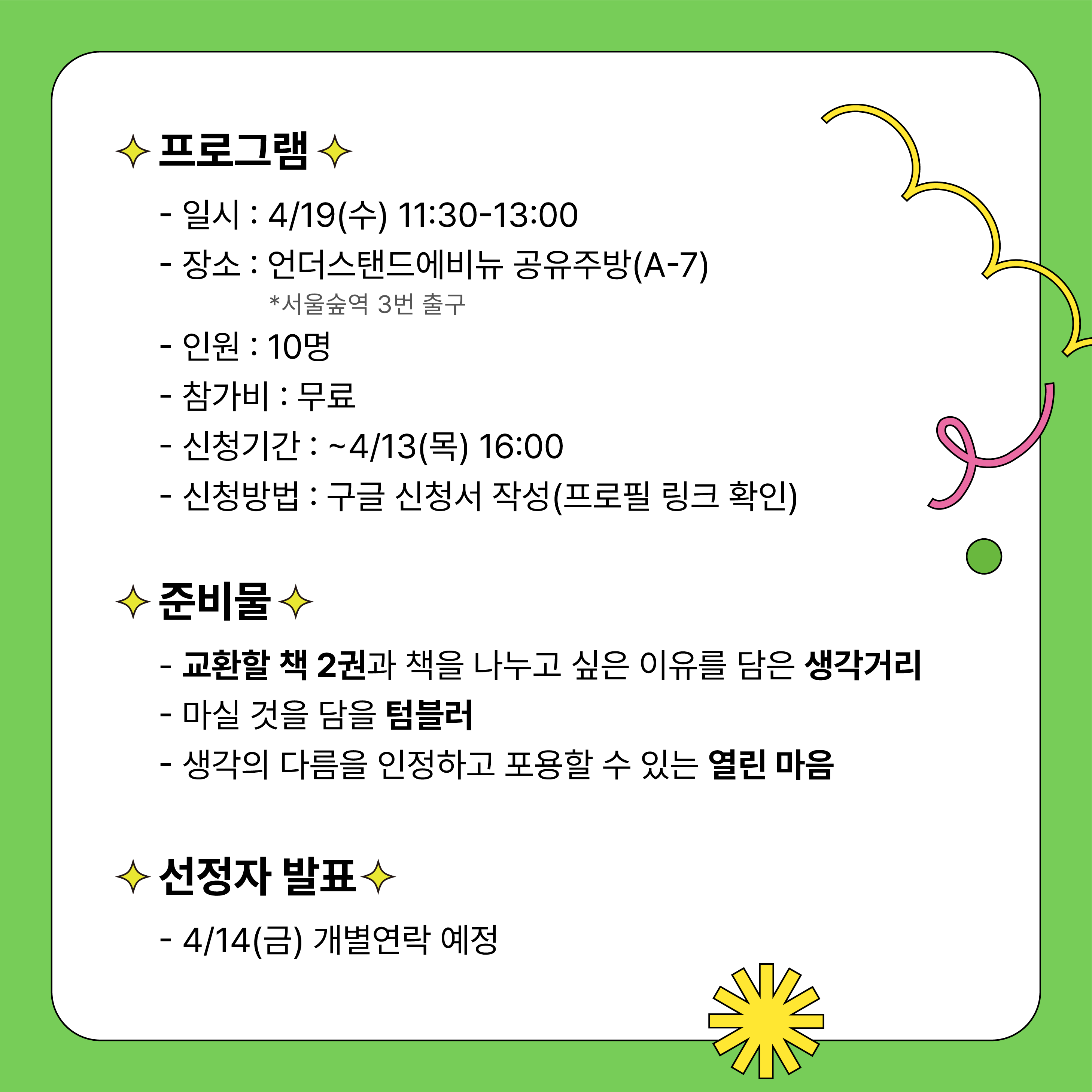 ❇️Âü°¡ÀÚ ¸ðÁý❇️ <³ª´©´Â º½, 51% ³Ê¿Í ³ªÀÇ Ã¥Àå °øÀ¯> 10¸í❗️Âü°¡ºñ ¹«·á❗️